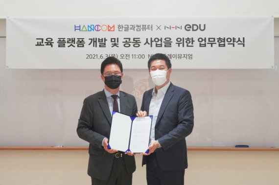 한컴은 이날 경기도 성남시 NHN 판교사옥에서 김대기 한컴 총괄부사장과 여원동 NHN에듀 대표를 비롯한 관계자들이 참석한 가운데 교육플랫폼 개발 및 공동사업 추진을 위한 업무협약을 체결했다. 이번 협약을 통해 양사 보유 기술과 솔루션을 활용해 차세대 교육플랫폼을 구축함으로써 공동 교육사업 모델을 만들어내기로 합의했다.