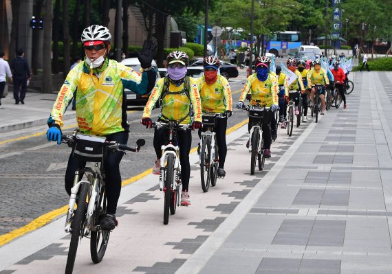 한국자전거단체협의회가 유엔 지정 '세계 자전거의 날'(6월 3일)을 맞아 서울 청계광장에서 '탄소중립 실천 캠페인'을 진행했다.