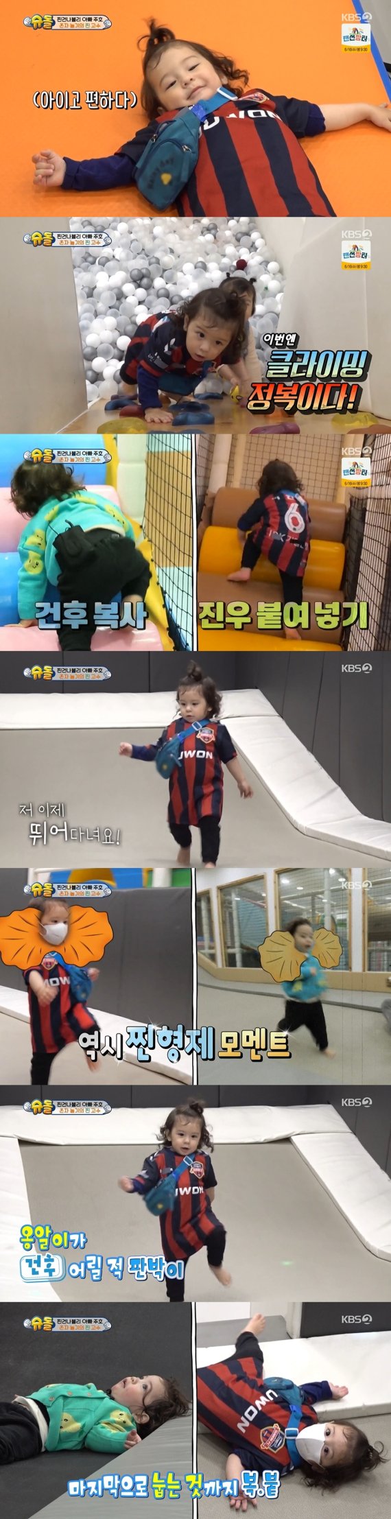 이날 진우가 또 하나의 레전드 영상을 탄생시켜 눈길을 끌었다. 키즈카페를 누비는 진우의 모습이 그 시절 건후와 똑 닮아 있었다.