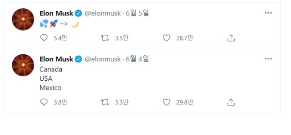 그는 전날 트위터에 캐나다(Canada), 미국(USA), 멕시코(Mexico)의 이름을 순서대로 게시물에 올렸다. 이를 놓고 트위터 사용자들은 머스크가 세 나라 이름을 의도적으로 배치한 것이라고 해석했다.