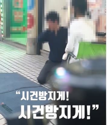 근처 가게 주인으로 추정되는 남성이 "여기서 싸우시면 안된다"고 하자 그제서야 폭행은 멈췄다.