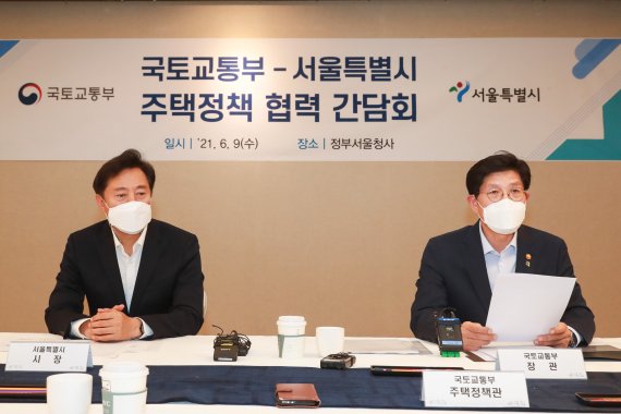 노형욱 국토교통부 장관과 오세훈 서울시장은 9일 정부서울청사에서 '국토부-서울시 주택정책 협력 간담회'를 열고, 주택 정책 전반에 대한 포괄적 협력 방안에 대해 합의했다.