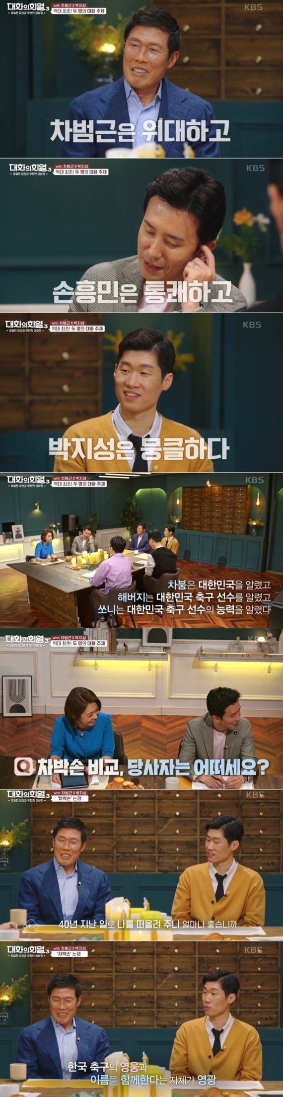 지난 10일 방송된 KBS 2TV '대화의 희열3'에는 한국 축구의 두 영웅 차범근과 박지성이 출연했다.