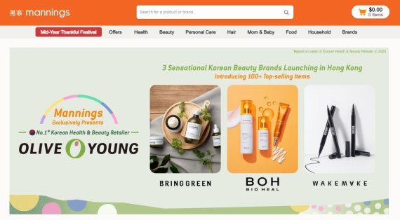 CJ올리브영은 자체 브랜드를 홍콩의 대표적인 헬스앤뷰티 스토어 '매닝스'에 수출한다고 14일 밝혔다.