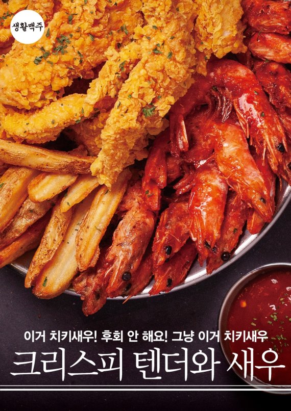 '크리스피 텐더와 새우'는 생활맥주에서 누적판매량 60만개를 돌파한 히트메뉴 '크리스피 텐더와 감자'를 리뉴얼 한 메뉴다. 국내산 닭 안심살에 생활맥주만의 노하우가 담긴 튀김옷을 입혀 겉은 바삭하지만 속은 촉촉하고 부드러운 것이 특징이다.