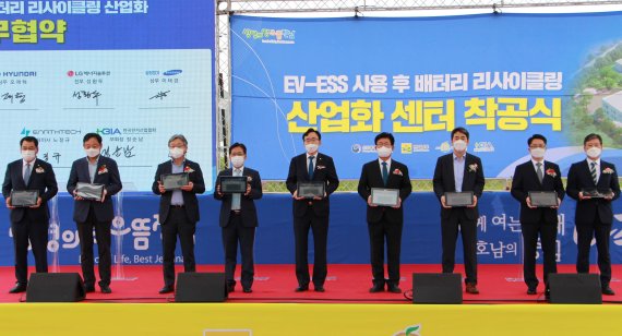 착공식과 함께 전남도, 나주시, 한국전지산업협회, 현대자동차 등 참여기업은 '사용 후 배터리 재사용 산업 육성과 자원순환경제 확산을 위한 업무협약'을 체결했다.