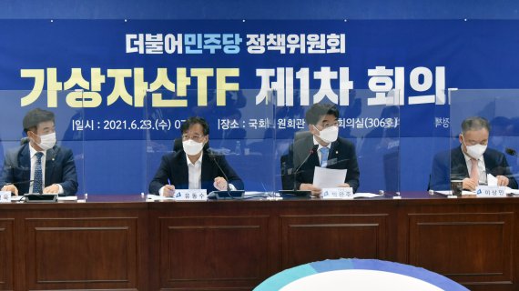 더불어민주당 가상자산TF는 23일 오전 국회 민주당 정책위 회의실에서 1차회의를 열고 정부의 가상자산 관리방안에 대한 보고를 들었다. 이날 회의에는 박완주 당 정책위 의장과 유동수 가상자산TF 단장, 김병욱 이용우 이정무(정무위) 조승래(과방위) 양경숙(기재위) 등 TF 위원, 국무조정실 금융위 기재부 등 정부 관계자 등이 참석했다.