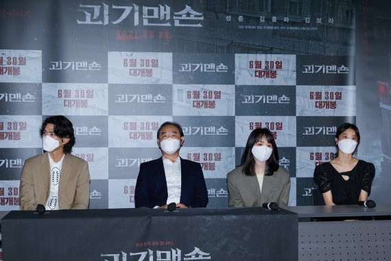 25일 오전 서울 용산구 CGV 용산아이파크몰에서 영화 '괴기맨숀' 언론시사회 및 기자간담회가 열려 성준, 김홍파, 김보라, 박소진, 조바른 감독이 참석했다.