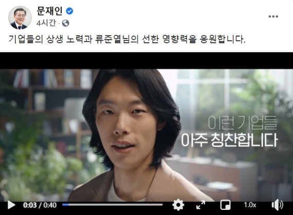 문 대통령은 탄소중립 캠페인 영상에 출연한 배우 류준열에 대해서도 "류준열님의 선한 영향력을 응원한다"고 격려했다.