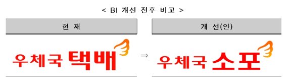 우정사업본부는 우체국 BI(Brand Identity)를 ‘우체국 소포’로 등록하고 관련 법령 32개, 각종 홍보문, 소포상자, 운송장, 차량 등에 사용한 명칭도 순차적으로 변경할 예정이다.
