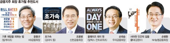 본격적인 휴가철을 앞두고 국내 4대 금융지주 회장들의 추천도서다. 국내 금융 리더들은 코로나19라는 팬데믹 이후의 변화된 시대, 생동감 있는 조직의 탄생, 리더십과 기업의 사회적 책임 등에 관심을 보였다. 이 모든 것을 관통하는 것은 '사회와 함께 하는 지속가능한 성장'이다.