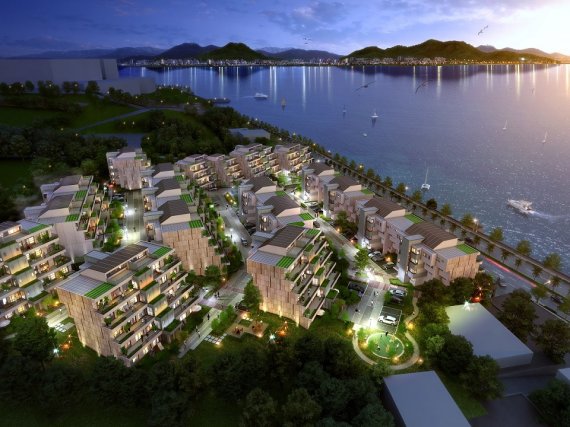 아파트의 편리함에 단독주택의 독립성까지 갖춘 이 테라스 하우스는 바닷가 바로 옆에 위치한다. 동남쪽으로는 맑은 여수 앞바다가 펼쳐져 있고 서북쪽으로는 안심산이 위치해 바다와 산을 동시에 즐길 수 있는 최고의 조망권을 자랑한다. 전 세대를 남동향 중심으로 배치해 세대 안에서 바다를 직접 조망할 수 있도록 특별 설계했다.