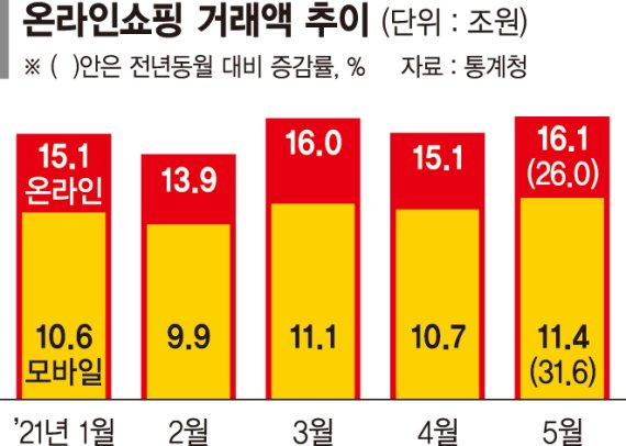 온라인쇼핑 거래액은 코로나19 국면 장기화로 인해 거래액이 점차 늘어나고 있다. 지난해 11월에는 사상 처음으로 15조원을 돌파했고, 올 3월에는 15조9490억원을 기록했다. 이어 4월에도 2개월 연속 15조원대 거래액이 유지됐으나 이번엔 16조원을 돌파한 것이다.