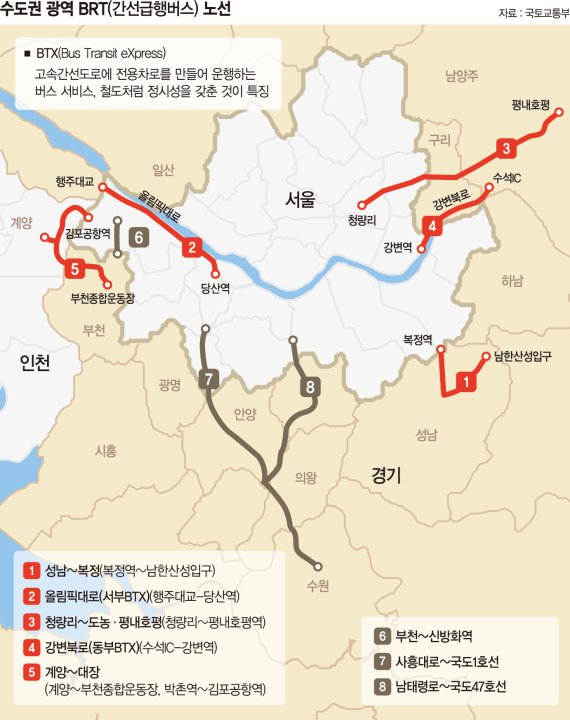 또 서부권 교통난 해소를 위해 검단∼대곡(인천시 서구 대곡동∼김포시 마산동) 광역도로 노선이 확정됐다. 청량리역 환승센터, 서울역 환승센터 등 수도권에 11개 환승센터도 신설된다.