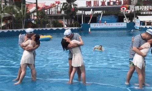 지난 7일 중국 현지 언론은 전날 '세계 키스의 날'을 맞아 충칭의 한 수영장에서 열린 키스대회 영상을 공개했다.
