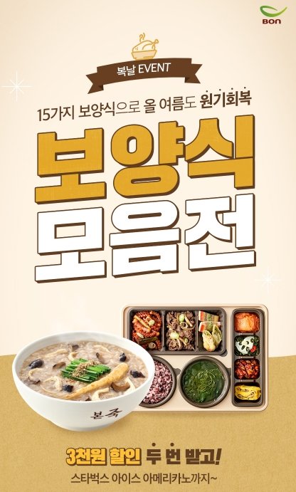 참여 방법은 본오더 앱에서 이들 메뉴 주문 시 입력 쿠폰란에 '복날엔본오더'를 입력하면 3000원 할인이 적용된다. 본오더 이용 고객에 감사를 전하고자 아이스 아메리카노 모바일 교환권 이벤트도 진행한다. 기간 내 보양 메뉴 3회 이상 주문 고객을 대상으로, 다음달 13일 모바일 교환권을 발송한다.