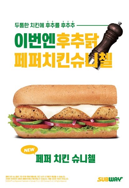 써브웨이 페퍼 치킨 슈니첼은 치킨 슈니첼과 후추의 향미를 느낄 수 있는 제품이다. 메인 재료인 치킨 슈니첼을 오븐에서 한 번 더 구워 단백한 것이 특징이다. 패티가 통째로 들어가 있다는 점도 돋보인다. 가격은 15㎝ 샌드위치 기준 5900원이다.
