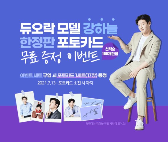 쎌바이오텍은 13일부터 듀오락 몰에서 이벤트 제품 구매 시 듀오락 모델 '강하늘'의 친필 사인이 포함된 포토카드를 선착순 100명에게 증정한다고 밝혔다.