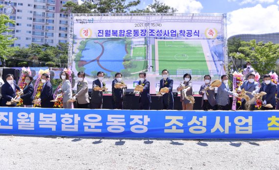 광주시는 15일 오전 남구 진월동 현장에서 이용섭 시장, 김병내 남구청장 등 관계자와 주민들이 참석한 가운데 진월복합운동장 조성사업 착공식을 개최했다.