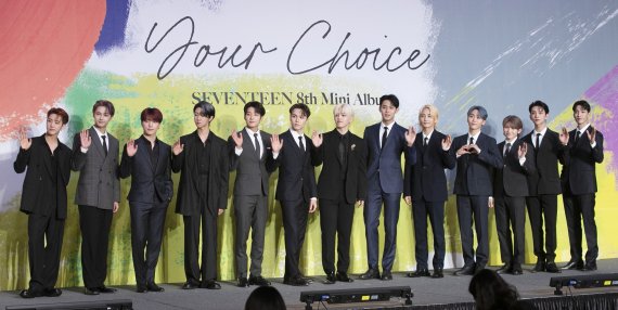 한편 세븐틴은 지난 2015년 '아낀다'로 데뷔해 '만세' '예쁘다' '아주 나이스' '울고 싶지 않아' '박수' '어쩌나' '레프트 & 라이트' 등의 곡으로 큰 사랑을 받았다. 지난달 18일 발매한 미니 8집 '유어 초이스'로 빌보드 메인 앨범 차트 '빌보드 200'에 15위로 첫 진입하는 성과를 거뒀다.