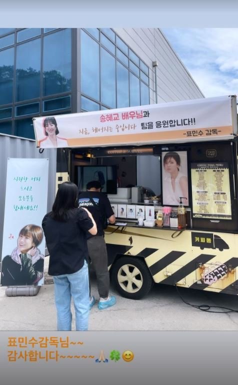 공개된 사진 속에는 '지금, 헤어지는 중입니다' 촬영장에 표 감독이 보낸 커피차에 줄을 선 사람들의 모습이 담겨 있다.