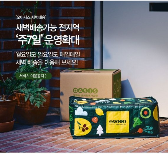 안준형 오아시스마켓 사장은 "최근 배송권역 지역을 확대한데 이어 주 7일 새벽배송 서비스를 도입함으로써 온라인 장보기를 선호하는 소비자의 편익이 더욱 확대될 것으로 보인다"며 "새벽배송 서비스의 확장과 다각화를 통해 오아시스마켓의 전체적인 새벽배송 시장 점유율이 확대될 것으로 기대된다"고 강조했다.