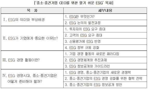 이번 가이드북은 세계적으로 ESG(환경·사회·지배구조) 경영 패러다임이 확산되면서 소비자·공급망·투자자 등의 ESG 요구가 확대되고 있고, EU 등 각국 정부에서 탄소중립·인권 등 규제를 강화하고 상황에서 국내 중견·중소기업의 발 빠른 대응을 지원하기 위한 목적으로 준비됐다.