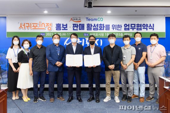 서귀포시는 지난 20일 시청에서 ‘카모아’를 운영하는 ㈜팀오투(대표 홍성주) 관계자와 김태엽 서귀포시장 등이 참석한 가운데 '서귀포in정 홍보·판매 활성화를 위한 업무 협약식(MOU)'을 가졌다.