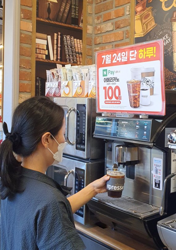 이마트24가 판매하고 있는 이프레쏘 원두커피는 아메리카노를 네이버페이로 결제하면 100원에 구매가능하다. 정상가격으로 결제 후 차액을 네이버페이 포인트로 페이백 하는 방식이다. 페이백은 1인당 5000원까지 가능하다. 이마트24 바리스타 커피도 동일한 이벤트가 진행된다.