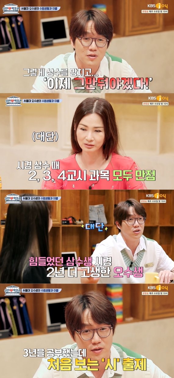 지난 21일 방송된 KBS Joy 예능 프로그램 '실연박물관'에는 오수 끝에 서울대에 진학한 사연자에 폭풍 공감하는 성시경의 모습이 그려졌다.