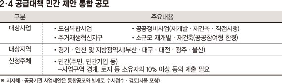 이어 한국토지주택공사(LH), 지방공사가 민간이 제안한 사업구역에 대해 입지 적합성·개략사업성 등을 검토한다. 국토부는 지자체와 함께 구성한 평가위원회를 통해 사업의 시급성·기대효과 등을 종합적으로 고려해 후보지를 선정할 계획이다.