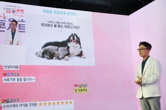 후원사 로얄캐닌코리아 대표이사 스탠리 브라우닝과 한국동물병원협회 이병렬 회장의 환영사를 시작으로 △한재웅 수의사의 '우리도 살 뺄 수 있어! 반려동물 체중관리' △'마이펫상담소 윤샘' 유튜브 채널을 운영하는 윤홍준 수의사의 '아파도 말 못하는 고양이를 위한 생활 속 건강신호 읽기' △박순석 수의사의 '반려동물을 진정으로 위하는 보호자 되는 법'을 주제로 한 스타 수의사들의 강연과 시청자들과의 실시간 소통이 진행됐다. 행사 중간중간에는 9월 30일까지 운영되는 농림축산식품부의 동물등록 자진신고 기간에 대한 안내도 이뤄졌다.