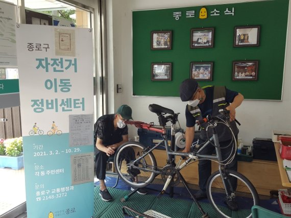 [서울=뉴시스] 이종희 기자 = 서울 종로구는 주민들의 자전거 이용 편의 증진을 위해 10월29일까지 동주민센터 17개소를 순회하며 '자전거 이동정비센터'를 운영한다고 23일 밝혔다.