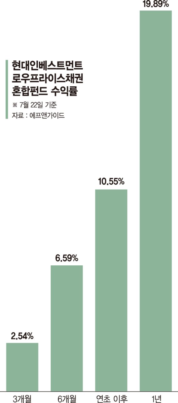 25일 금융정보업체 에프앤가이드에 따르면 지난 22일을 기준으로 로우프라이스채권혼합 펀드의 연초 이후 수익률은 10.55%를 가리키고 있다. 최근 1년 누적 수익률은 19.89%에 달한다.