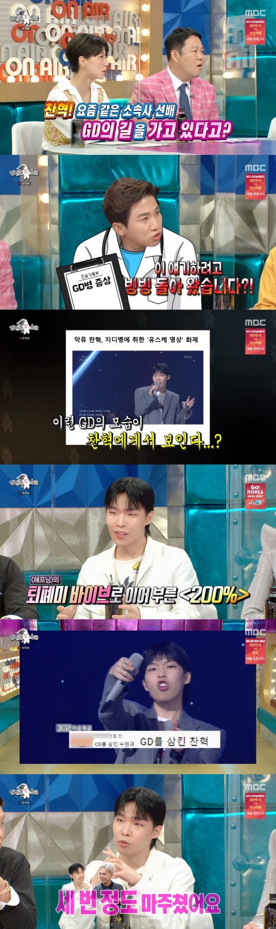 특히 패셔니스타로 유명한 빅뱅의 지드래곤(GD)이 언급되며 시선을 집중시켰다. 이찬혁은 MC들로부터 "지디의 길을 가고 있다던데"라는 질문을 받아 궁금증을 유발했다. 앞서 이찬혁은 한 방송에서 보여준 퍼포먼스 등이 지드래곤과 비슷하다며 화제를 모았었다.