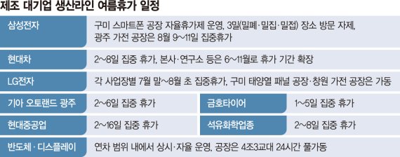 다만 한정된 인력에 생산이 원활해야 하는 제조업의 특성과 현재 여건을 고려, 아직은 한꺼번에 여름휴가를 다녀오는 곳이 대부분이다.