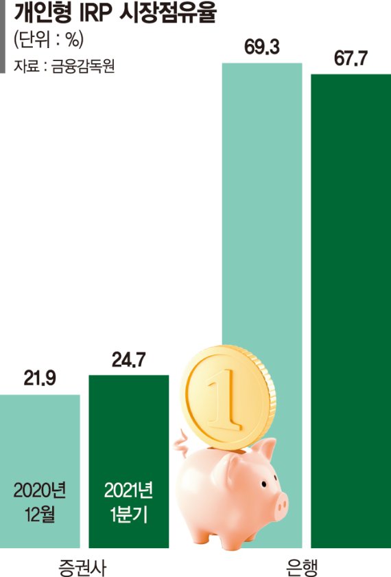 최근 들어 증권사들이 공격적으로 자금 유치에 나선 것도 돈의 이동을 부추기고 있다. 실제로 올해 4월 삼성증권이 금융권 최초로 IRP 수수료를 전액 면제하는 비대면 상품을 선보였다. 이후 미래에셋증권은 신규 비대면 IRP 고객뿐 아니라 기존 비대면 가입고객에게까지 수수료를 면제해 줬다. 이어 유안타증권도 대면·비대면 고객 구분 없이 IRP 수수료를 물리지 않기로 했다. 신한금투와 KB증권도 IRP 비대면 가입고객에게 수수료를 면제하기로 했다.