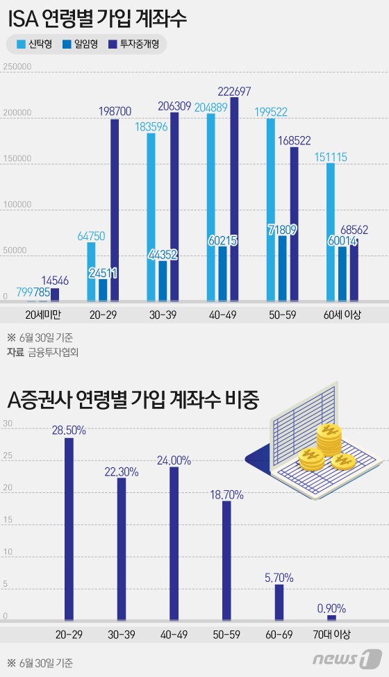 실제 A증권사의 비중을 보면 MZ세대의 참여가 더욱 두드러진다. 투자중개형 ISA 가입자의 절반 이상(50.8%)이 2030세대다.