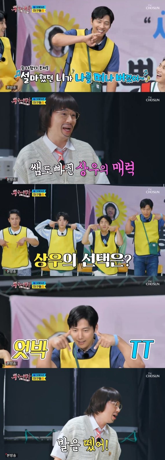 이를 지켜본 붐은 "내가 하는지 안 하는지 봤는데, 상우가 이 무거운 다리를 움직이더라. 발을 뗐어"라고 너스레를 떨어 또 한번 웃음을 줬다.