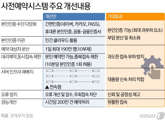 예방접종 사전예약 시스템 개선에 참여한 김은주 한국지능정보사회진흥원 단장도 "(본인인증 수단이) 기존 3종에서 5종으로 인증 방식이 확대된 것이다. 간편인증 방식이 네이버, 카카오, PASS가 추가돼 분당 30만건의 본인인증 가능하고, 최대 50만명 이상의 대기열이 준비돼 있다"고 말했다.