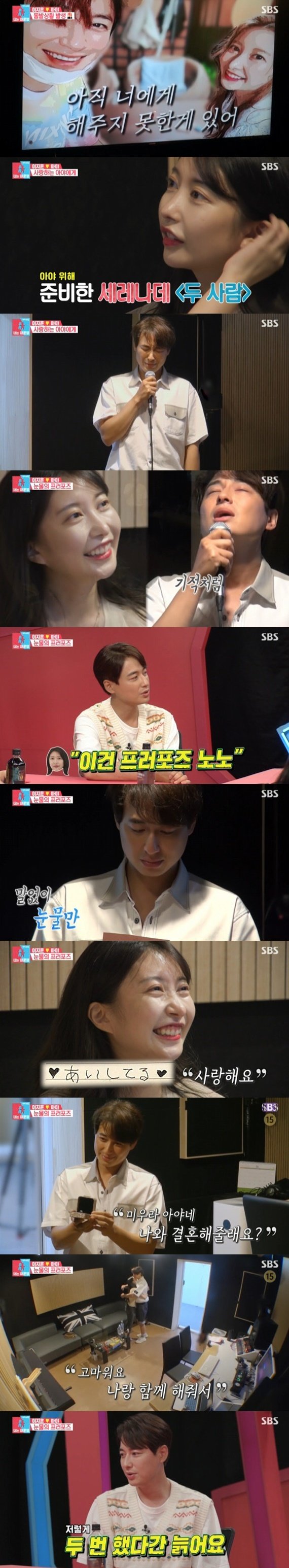 이지훈이 녹음을 위해 자리를 비운 사이, 홀로 앉아있던 아야 앞에 이지훈이 깜짝 준비한 프러포즈 영상이 공개돼 모두를 놀라게 했다.