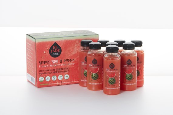 15일 업계에 따르면 제이드에프앤비가 선보이는 '엘제이드 얼린 생 수박주스'는 물 한 방울 섞지 않은 100% 수박과즙으로 만들었다. 비가열 살균방식인 초고압 살균 공법으로 생산하고 급속냉동을 통해 수박의 맛과 영양을 유지한다.
