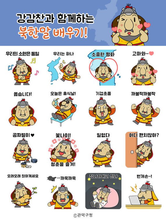 (서울=뉴스1) 허고운 기자 = 서울 관악구는 17일 오후 2시부터 '강감찬과 함께하는 북한말 배우기' 이모티콘 16종을 선착순 무료 배포한다고 밝혔다.