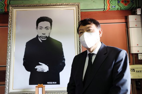 [서울=뉴시스] 양소리 기자 = 국민의힘 대권주자인 윤석열 전 검찰총장 측은 더불어민주당 예비후보인 이재명 경기지사가 음식 칼럼니스트 황교익씨를 경기관광공사 사장에 내정한 데에 "청출어람"이라고 비난했다. 문재인 정부의 인사 철학을 앞서서 따른 것이라는 뜻이다.