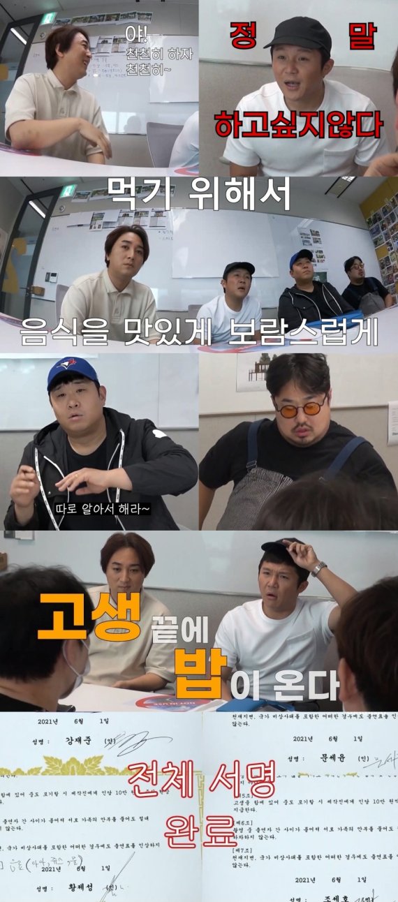 이후 '고끝밥' 제작진의 서약서가 이들 앞에 놓였고, 조세호는 "이런 걸 절대 쓰면 안 된다"며 당황해 했다. 서약서에는 '신체적 부상 및 재해를 입었을 경우 출연자 본인 스스로 감당한다' 등의 내용이 적혀 있었다. 그러나 결국 멤버 4인은 모두서약서에 자필 사인을 마쳤고, '역대급 고생'을 예약했다.