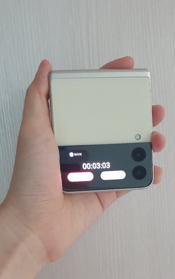 22일 삼성전자에 따르면 갤럭시Z플립3는 크림, 팬텀 블랙, 그린, 라벤더 등 4가지 색상으로 출시됐다. 직접 체험한 제품은 크림색으로 따뜻한 느낌의 컬러와 검은색 외부 디스플레이가 어우러져 차분하고 세련된 느낌을 줬다.