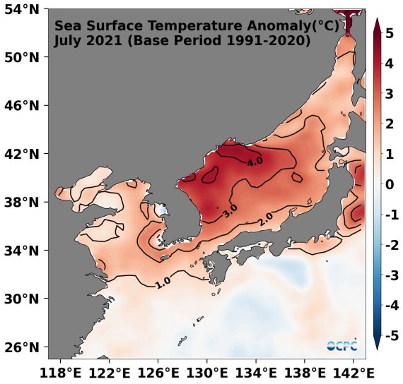 같은 기간 전 지구 해면수온이 0.3℃ 상승한 점을 감안해 볼 때 이번 동해의 수온 상승폭은 매우 높은 수치다.