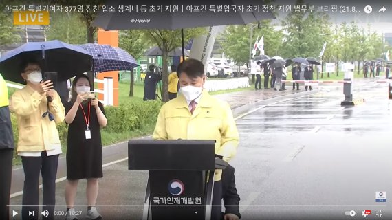 이어 "비가 내리는 상황에서 정부 방침을 발표하는 차관을 위해 직원이 10분 이상동안 무릎을 꿇고 우산을 받쳐들고 있는 모습을 온라인으로 본 국민들은 경악을 금치 못했을 것"이라고 날을 세웠다.