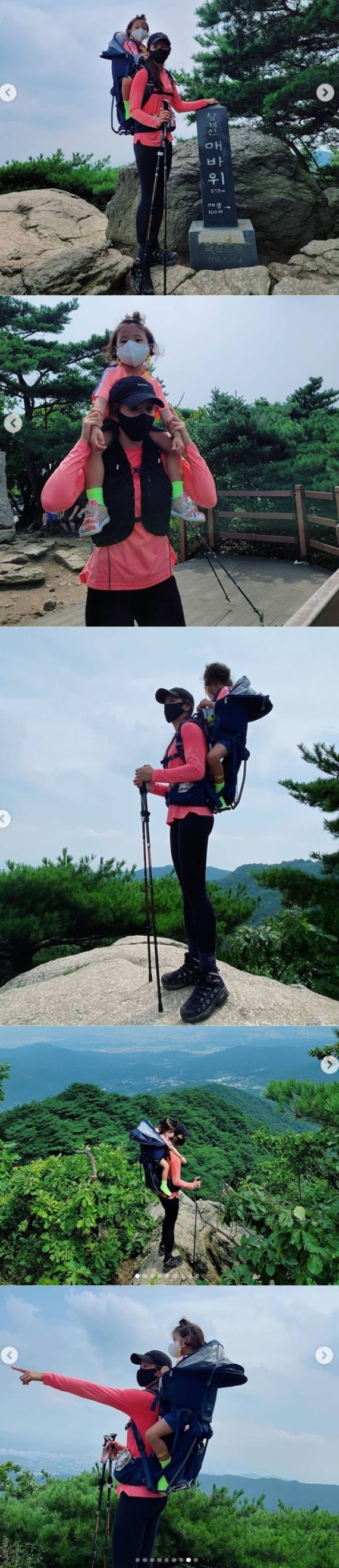 이시영은 "드디어. 언젠가 꼭 한번 하고 싶었는데 계속 미루다가 정윤이 몸무게 때문에 더이상 미룰 수 없어 다녀온 청계산"이라고 이날을 기록했다.