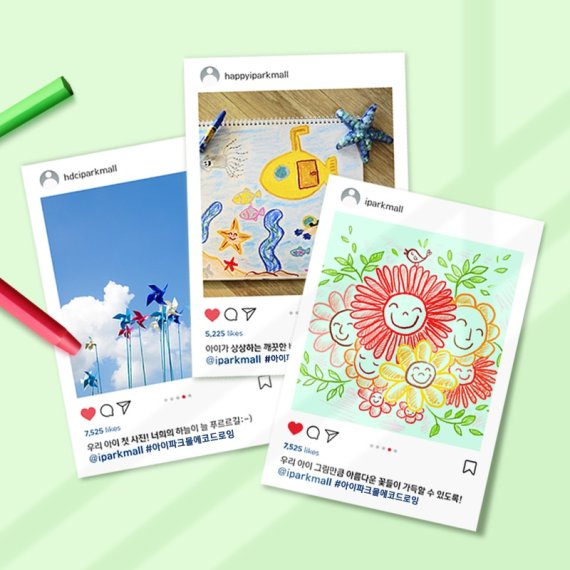 아름다운 자연 풍경을 담아 자녀가 직접 그림을 그리거나 사진을 촬영해 참여할 수 있다. 인스타그램에서 '@iparkmall'을 태그하고, 필수 해시 태그를 달아주면 자동 응모된다.